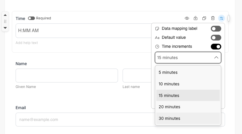 Control the precision: Scheduling conference rooms in 30-minute blocks? Set your time increment to 30 minutes. Users can't request 2:17 PM when your system only supports 2:00 or 2:30. Need minute-by-minute precision for medication logging? That works too.